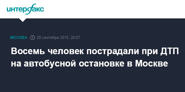 Москва. 20 сентября. INTERFAX.RU - Восемь человек пострадали при наезде легковушки на автобусную остановку на юго-западе Москвы, сообщили "Интерфаксу" в пресс-службе столичного управления ГИБДД.