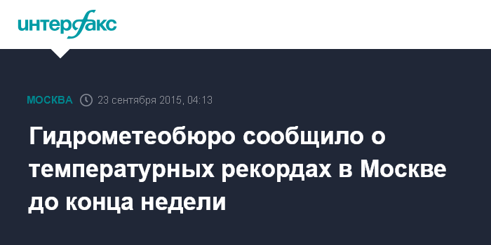 Ранее "Интерфакс" сообщал, что 18 сентября в Москве был повторен температурный рекорд 1955 года, когда воздух на базовой московской метеостанции на ВДНХ прогрелся до 25,8 градусов.