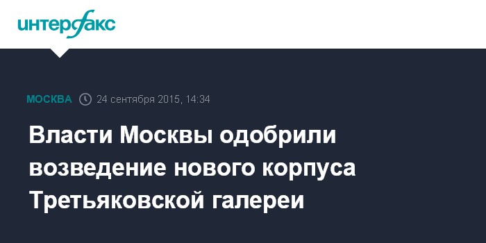 Москва. 24 сентября. INTERFAX.RU - На заседании Градостроительно-земельной комиссии правительства столицы, которое в четверг провел мэр Москвы Сергей Собянин, одобрены необходимые документы для строительства нового корпуса Третьяковской галереи.