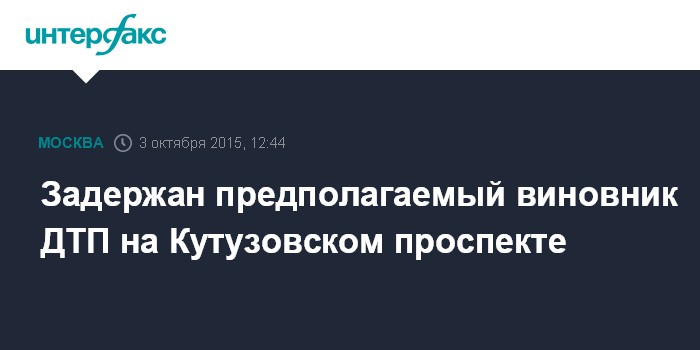 Москва. 3 октября. INTERFAX.RU - Задержан предполагаемый виновник ДТП на Кутузовском проспекте, в результате которого погиб сотрудник полиции, сообщил "Интерфаксу" в субботу руководитель пресс-службы столичного главка полиции Андрей Галиакберов.
