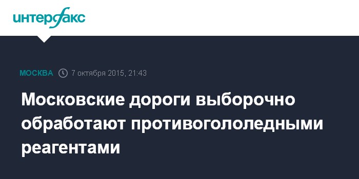 Москва. 7 октября. INTERFAX.RU - Коммунальные службы Москвы после 23 часов выборочно обработают противогололедными средствами наиболее опасные участки дорог, сообщил пресс-секретарь заммэра столицы по вопросам ЖКХ и благоустройства Игорь Пергаменщик.