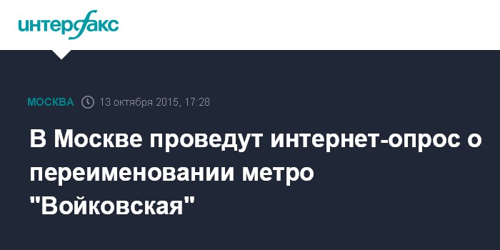 Москва. 13 октября. INTERFAX.RU - Москвичи в ближайшее время смогут высказаться по поводу необходимости переименования станции метро "Войковская", железнодорожной платформы и транспортно-пересадочного узла, заявил мэр столицы Сергей Собянин.