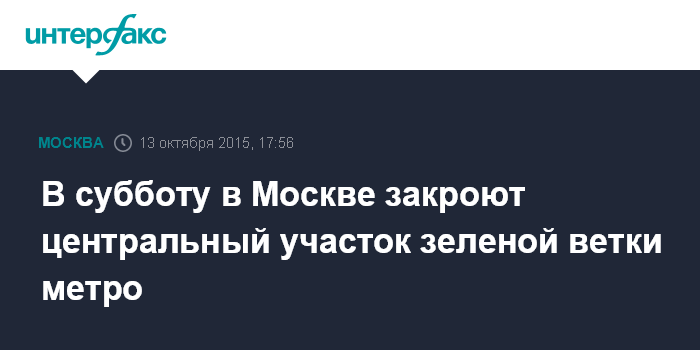 В субботу в Москве закроют центральный участок зеленой ветки метро