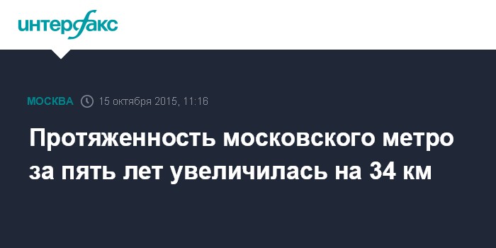Москва. 15 октября. INTERFAX.RU - За пять лет в столице построено более 34 км линий метро, сообщил заместитель мэра Москвы по вопросам градостроительной политики и строительства Марат Хуснуллин в эфире радио "Маяк" в четверг.