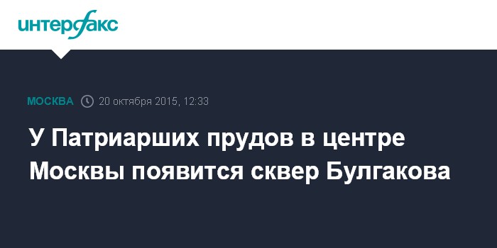 Москва. 20 октября. INTERFAX.RU - В районе Патриарших прудов, где находилась "нехорошая квартира" романа Михаила Булгакова "Мастер и Маргарита", одному из скверов будет присвоено имя писателя.