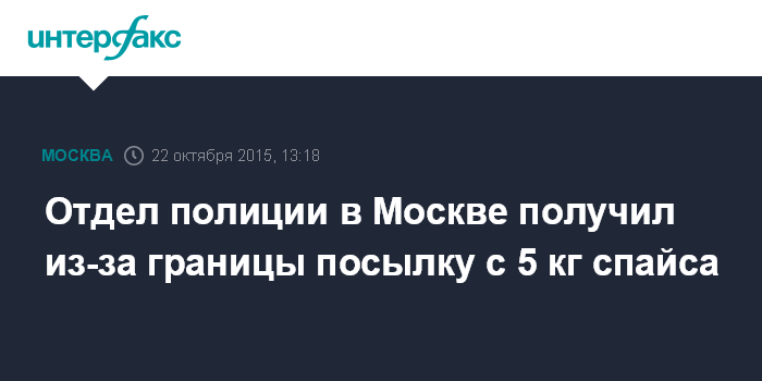 Москва. 22 октября. INTERFAX.RU - Посылку с 5 кг спайса по ошибке отправили в отдел полиции в Москве, сообщил "Интерфаксу" в четверг руководитель пресс-службы столичного главка полиции Андрей Галиакберов.