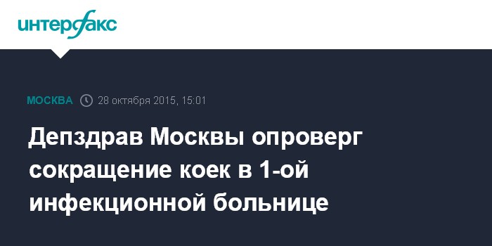 Москва. 28 октября. INTERFAX.RU - Департамент здравоохранения Москвы опроверг информацию о сокращении коечного фонда в Первой инфекционной больнице.