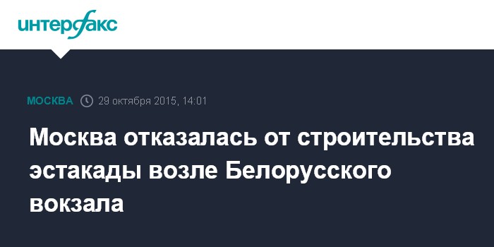 Москва. 29 октября. INTERFAX.RU - Столичные власти отказались от планов строительства развязки возле Белорусского вокзала, предполагавшей возведение крупной эстакады.