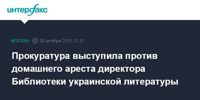 Москва. 30 октября. INTERFAX.RU - Прокуратура выступает против домашнего ареста директора Библиотеки украинской литературы Натальи Шариной, которая стала фигуранткой дела о распространении экстремистских книг.