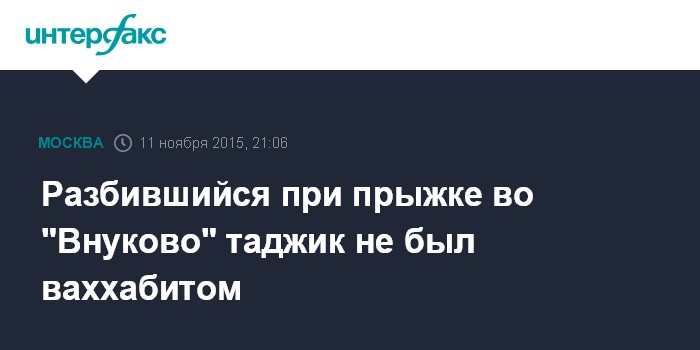 Москва. 11 ноября. INTERFAX.RU - Погибший в столичном аэропорту Внуково гражданин Таджикистана не является ваххабитом, сообщил "Интерфаксу" в среду представитель пресс-службы Управления на транспорте МВД России по ЦФО.