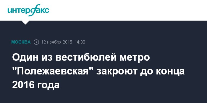 "Вестибюль со стороны последнего вагона из центра и примыкающий подуличный переход под Хорошевским шоссе будут закрыты до 30 декабря 2016 года", - сообщили "Интерфаксу" в пресс-службе метрополитена в четверг.