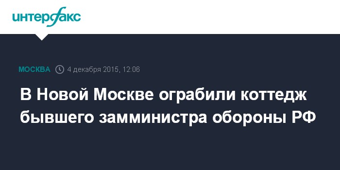 Москва. 4 декабря. INTERFAX.RU - Столичная полиция ищет налетчиков, ограбивших в Новой Москве коттедж, который принадлежит бывшему замминистра обороны РФ Владимиру Исакову, сообщил "Интерфаксу" источник в правоохранительных органах.