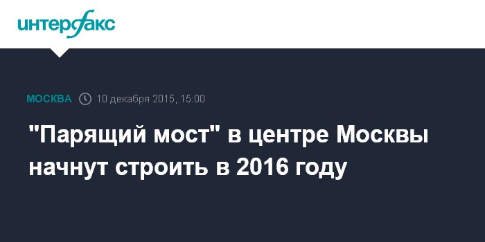 Москва. 10 декабря. INTERFAX.RU - Строительство "парящего моста" в парке "Зарядье" начнется в следующем году, сообщил на пресс-конференции в четверг руководитель департамента строительства Москвы Андрей Бочкарев.