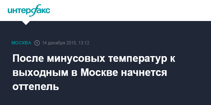 Москва. 14 декабря. INTERFAX.RU - В первой половине недели в Москве похолодает, однако к выходным ожидается оттепель.