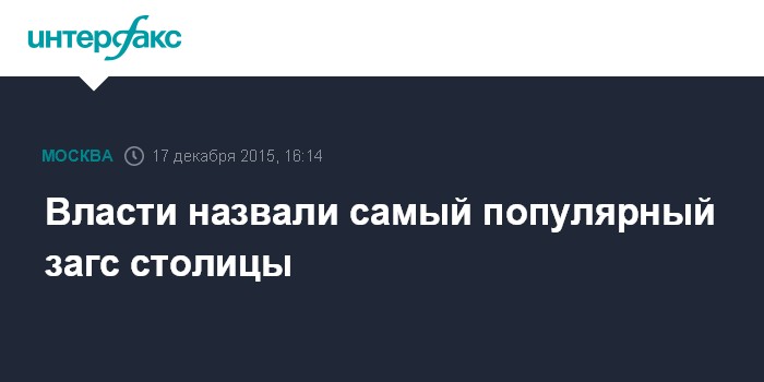 Москва. 17 декабря. INTERFAX.RU - Лидером по числу поданных заявлений на заключение брака в Москве с начала текущего года стал загс N4, сообщает в четверг официальный сайт департамента информационных технологий столицы.