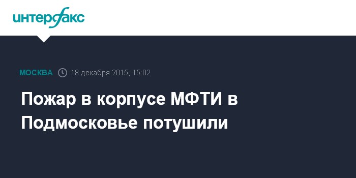 Москва. 18 декабря. INTERFAX.RU - Пожарные справились с открытым огнем в учебном корпусе МФТИ в подмосковном Долгопрудном, сообщили "Интерфаксу" в подмосковном главке МЧС.