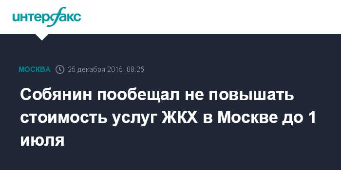 Москва. 25 декабря. INTERFAX.RU - Индексация тарифов на услуги ЖКХ с повышением на 7,4% в российской столице будет проведена с 1 июля 2016 года, сообщил мэр Москвы Сергей Собянин в интервью газете Metro, опубликованном в пятницу.