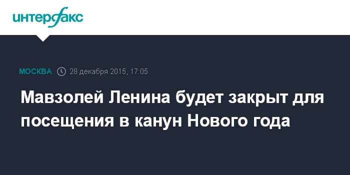 Москва. 28 декабря. INTERFAX.RU - Допуск посетителей в мавзолей В.И.Ленина 31 декабря осуществляться не будет в связи с праздничными новогодними мероприятиями на Красной площади.