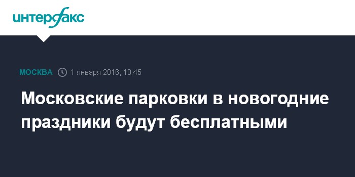 Москва. 1 января. INTERFAX.RU - Столичные парковки с 1 по 10 января включительно станут бесплатными для всех автомобилистов.