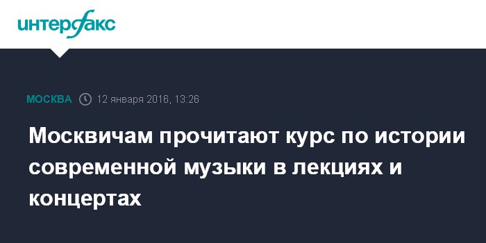 Москва. 12 января. INTERFAX.RU - В Москве прочитают цикл лекций по истории современной музыки в рамках проекта "XX век: точка отсчета", который стартует 29 января на площадке Дирекции образовательного программ в сфере культуры и искусства.