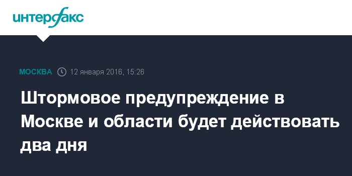 Москва. 12 января. INTERFAX.RU - Штормовое предупреждение, объявленное синоптиками для Москвы и Московской области, будет действовать не только во вторник, но и в среду, сообщается на сайте Гидрометцентра России.