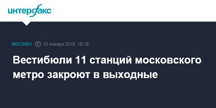 Москва. 15 января. INTERFAX.RU - В рамках программы благоустройства в предстоящие выходные будут закрыты вестибюли 11 станций Московского метрополитена, сообщили "Интерфаксу" в пресс-службе подземки.