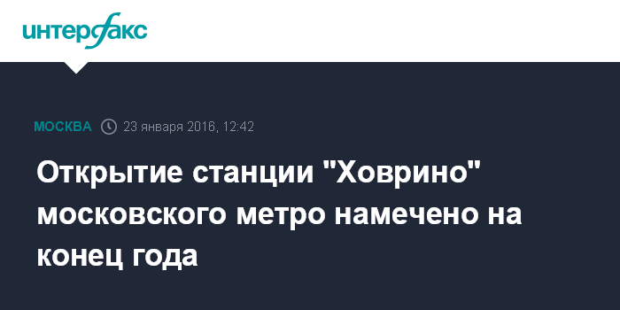 Москва. 23 января. INTERFAX.RU - Станция "Ховрино" Замоскворецкой линии метро будет открыта в конце этого года, сообщил заместитель мэра Москвы по вопросам градостроительной политики и строительства Марат Хуснуллин.