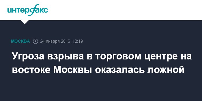 Угроза взрыва в торговом центре на востоке Москвы оказалась ложной
