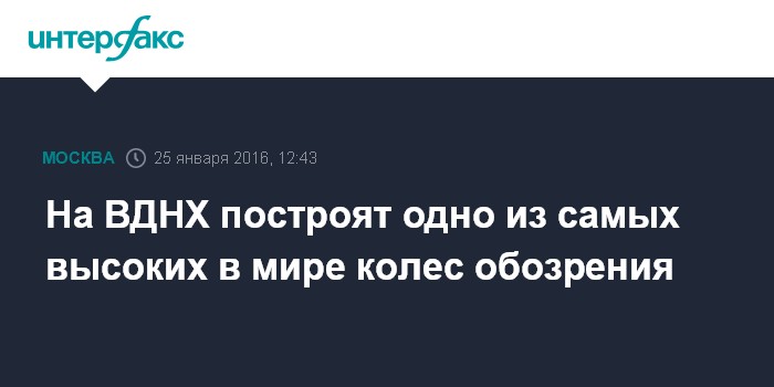Москва. 25 января. INTERFAX.RU - Выставка достижений народного хозяйства (ВДНХ) до конца января объявит конкурс на разработку эскиза и бизнес-модели по проекту нового колеса обозрения стоимостью 11,8 млн рублей, пишет газета "Известия".