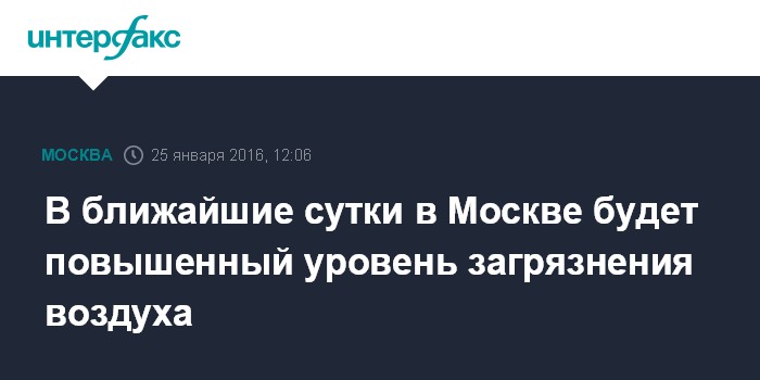 Москва. 25 января. INTERFAX.RU - На фоне ясной и морозной погоды в столичном регионе метеорологи прогнозируют повышенный уровень загрязнения воздуха, сообщает пресс-служба Росгидромета.