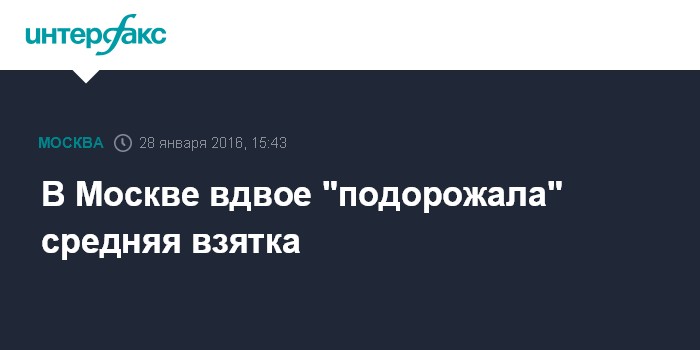 Москва. 28 января. INTERFAX.RU - Средний размер взятки в Москве вырос в два раза, сообщил начальник столичного главка полиции Анатолий Якунин на расширенном заседании коллегии ведомства.