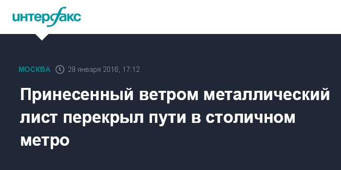 Москва. 29 января. INTERFAX.RU - Металлический лист упал на пути открытого участка Филевской линии московского метро в пятницу днем, сообщили "Интерфаксу" в пресс-службе метрополитена.