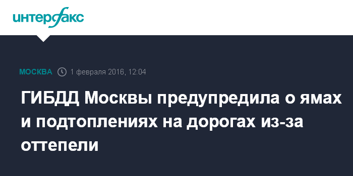 ГИБДД Москвы предупредила о ямах и подтоплениях на дорогах из-за оттепели