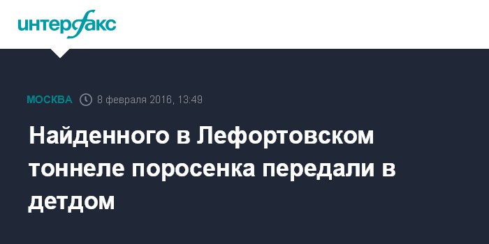 Москва. 8 февраля. INTERFAX.RU - Найденный в Лефортовском тоннеле мини-пиг передан в один из детских домов Москвы, сообщили "Интерфаксу" в пресс-службе столичного главка полиции.
