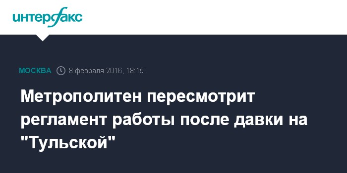 Москва. 8 февраля. INTERFAX.RU - Московский метрополитен пересмотрит регламент закрытия вестибюлей и сделает организационные выводы в связи с давкой на станции "Тульская" в понедельник утром. Об этом заявил руководитель московского метрополитена Дмитрий Пегов.