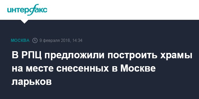 Москва. 9 февраля. INTERFAX.RU - Председатель Патриаршей комиссии по вопросам семьи, защиты материнства и детства Димитрий Смирнов в интервью радиостанции "Говорит Москва" назвал здравой идею построить в Москве храмы на месте снесенных ларьков.