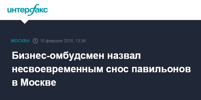 Бизнес-омбудсмен назвал несвоевременным снос павильонов в Москве