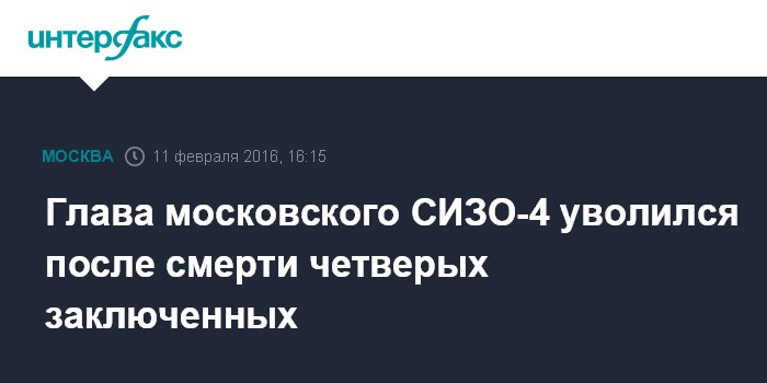 Ранее источник сообщил "Интерфаксу", что в СИЗО-4, расположенном на северо-востоке Москвы, с ноября по декабрь прошлого года при различных обстоятельствах скончались четверо заключенных, еще одного удалось спасти после попытки самоубийства.