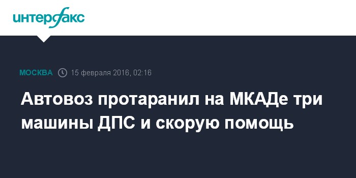 Москва. 15 февраля. INTERFAX.RU - Автовоз столкнулся на МКАДе с тремя патрульными машинами ДПС и каретой скорой помощи, сообщили "Интерфаксу" в пресс-службе ГИБДД Москвы.