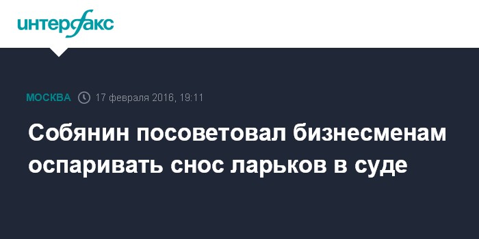 Москва. 17 февраля. INTERFAX.RU - Мэр Москвы Сергей Собянин считает, что предприниматели могут оспорить действия властей по сносу незаконно построенных павильонов в суде.