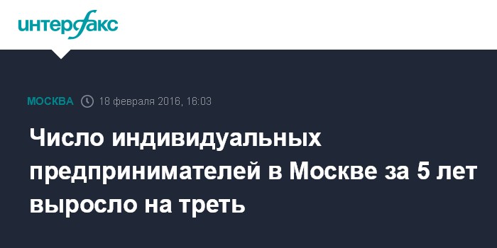 Москва. 18 февраля. INTERFAX.RU - Число москвичей, зарегистрированных в качестве индивидуальных предпринимателей, за последние пять лет увеличилось на 32%, сообщает в четверг пресс-служба департамента экономической политики и развития столицы со ссылкой на заммэра Москвы Наталью Сергунину.