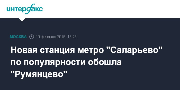 "Станция "Саларьево" стала самой популярной среди недавно открытых станций: она перевозит более 36 тыс. пассажиров в сутки и эта цифра уверенно растет. К "Саларьево" организован подвоз 11 автобусных маршрутов и открыта удобная перехватывающая парковка. Для сравнения: станция "Румянцево", открытая месяц назад, ежедневно перевозит 26 тыс. пассажиров", - приводятся на портале слова Ликсутова.