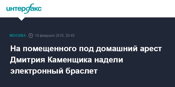 Москва. 19 февраля. INTERFAX.RU - Сотрудники ФСИН осуществят надзор за помещенным под домашний арест владельцем "Домодедово" Дмитрием Каменщиком с использованием электронного браслета, сообщили "Интерфаксу" в пресс-бюро ведомства.
