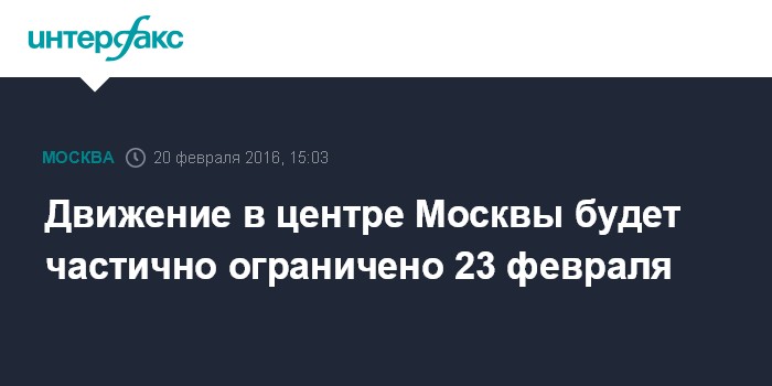 Москва. 20 февраля. INTERFAX.RU - 23 февраля, в День Защитника Отечества, в Москве частично ограничат движение в связи с проведением мероприятий политических партий ЛДПР и КПРФ. Об этом сообщает пресс-служба столичного департамента региональной безопасности и противодействия коррупции.