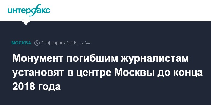 Ранее "Интерфакс" сообщал, что комиссия по монументальному искусству при Мосгордуме на одном из последних заседаний одобрила проект установки монумента погибшим журналистам на Арбатской площади.