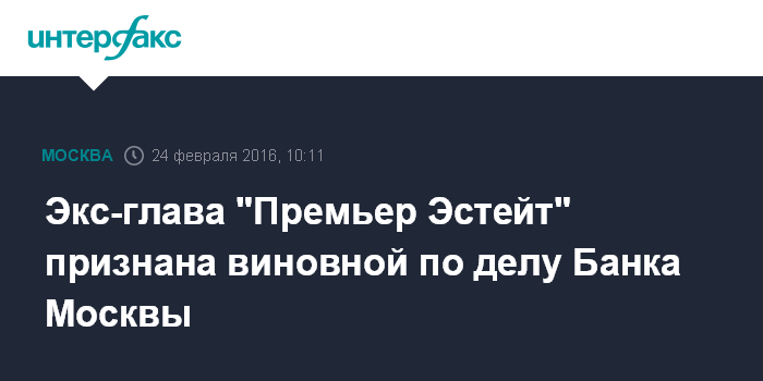 Экс-глава "Премьер Эстейт" признана виновной по делу Банка Москвы