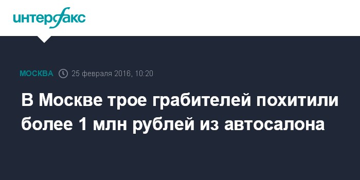 В Москве трое грабителей похитили более 1 млн рублей из автосалона