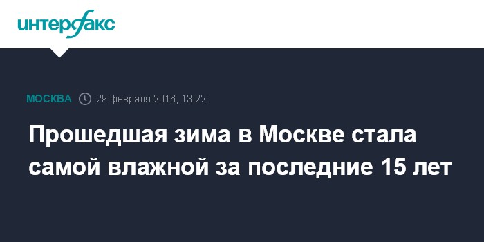 Москва. 29 февраля. INTERFAX.RU - По количеству осадков, зафиксированных на утро последнего зимнего дня, 29 февраля, нынешняя зима в столице была самой влажной после 2001 года, сообщает Гидрометцентр России в понедельник.