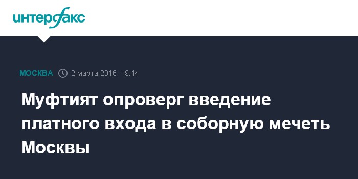 Москва. 2 марта. INTERFAX.RU - Информация о том, будто вход в московскую соборную мечеть стал платным, не соответствует действительности, заявили в Духовном управлении мусульман РФ.