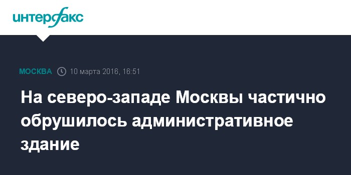 Москва. 10 марта. INTERFAX.RU - Фасад и часть крыши административного здания обрушились на северо-западе Москвы, сообщил "Интерфаксу" источник в экстренных службах города.
